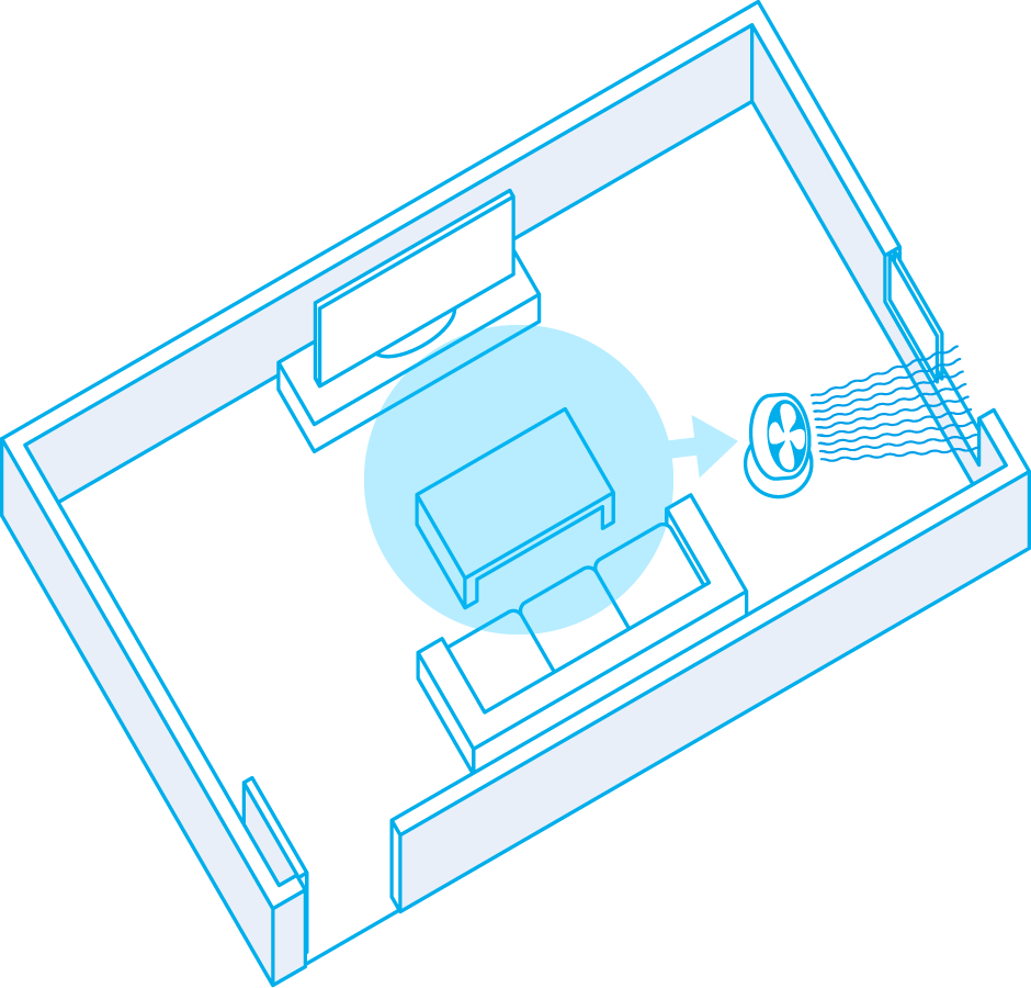 最有效的方法是將風扇轉向窗戶,讓空氣進入房間。如果將風扇對準房間,即使新鮮的室外空氣會通過窗戶進入房間,房間中的髒空氣也會殘留在房間內。
