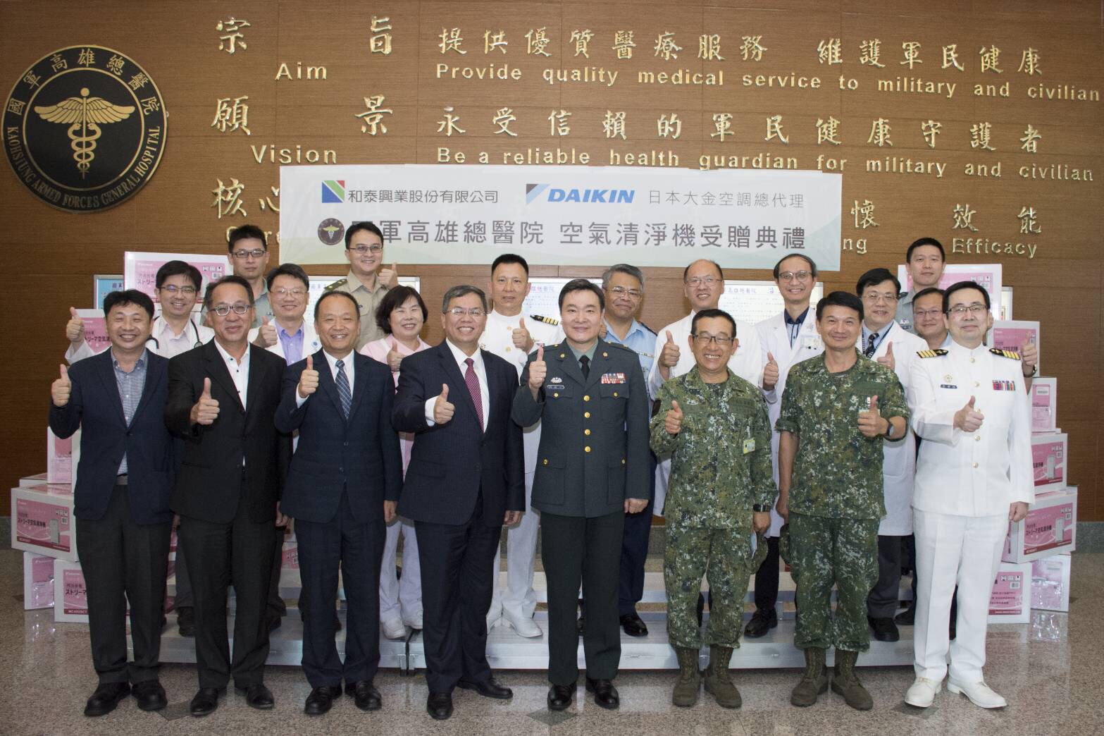 捐贈儀式在國軍高雄總醫院舉行,由和泰興業執行副總林鴻志代表公司捐出每台價值萬餘元、具有除菌抗病毒的大金空調空氣清淨機,並邀請陸軍第8軍團指揮官傅中將、副指揮官羅少將及該院醫護同仁共同見證,過程簡單隆重,氣氛溫馨。