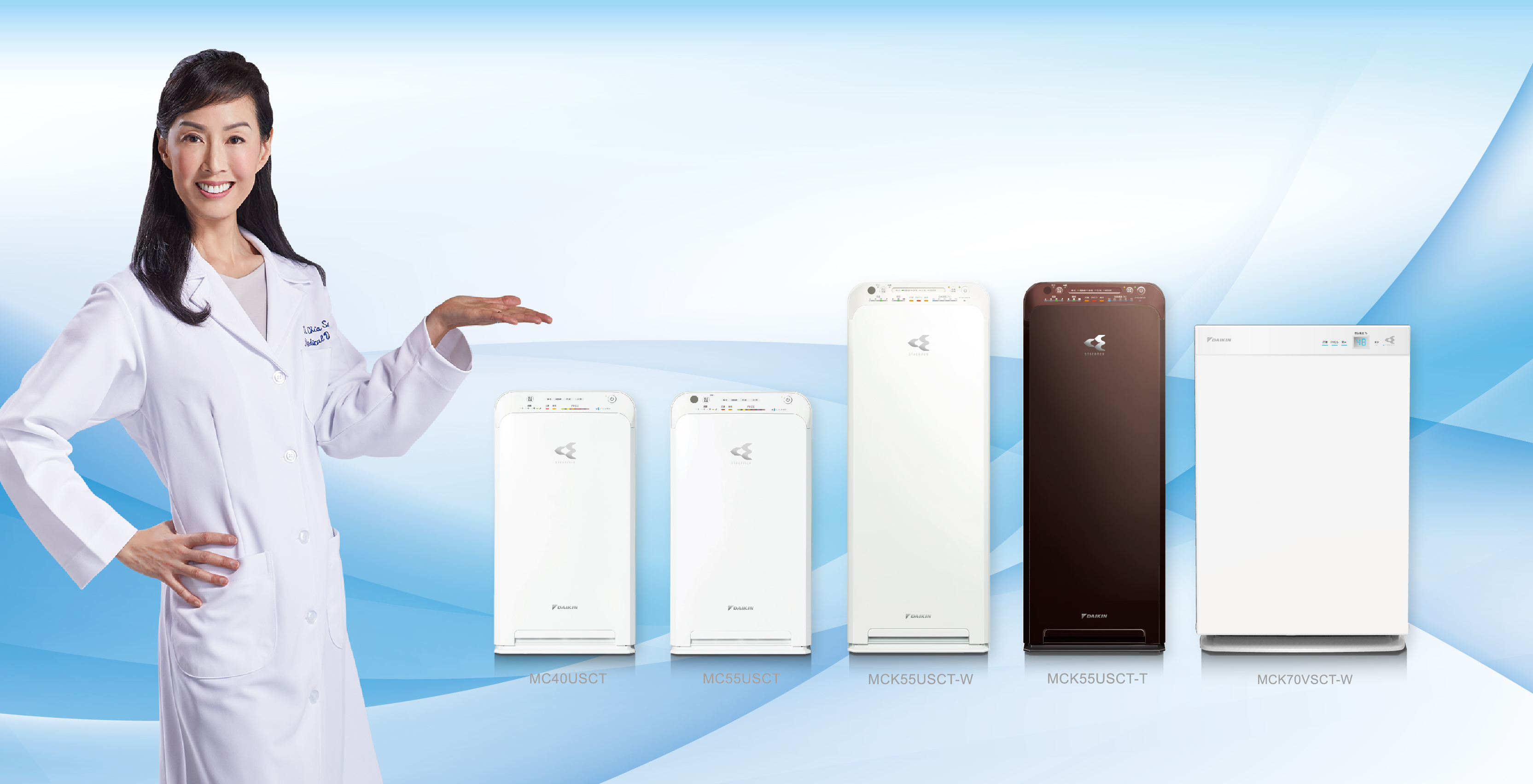 美國醫學博士蘇加璐指出,大金閃流放電空氣清淨機全系列採用先進閃流放電技術,強力分解去除空氣中的六大漂浮物質,包括過敏物質、化學氣體、異味、灰塵及病菌、病毒。功能設計上,採用前方及兩側吸入口,強大吸力三方吸附灰塵至過濾網上,還有下吸入口可吸入接近地板的灰塵,並釋放主動離子破壞空氣中病毒表面的蛋白質,使其沒有傳染力,再加上可過濾99%最小PM0.1灰塵和汙染物的靜電HEPA濾網,以及業界首創TAFU超長效濾網,可過濾99.97%的PM0.3懸浮微粒,高度防潑水、防油,可防止髒汙堵塞,以上3大清淨特色全面防堵空氣中有害物質。
