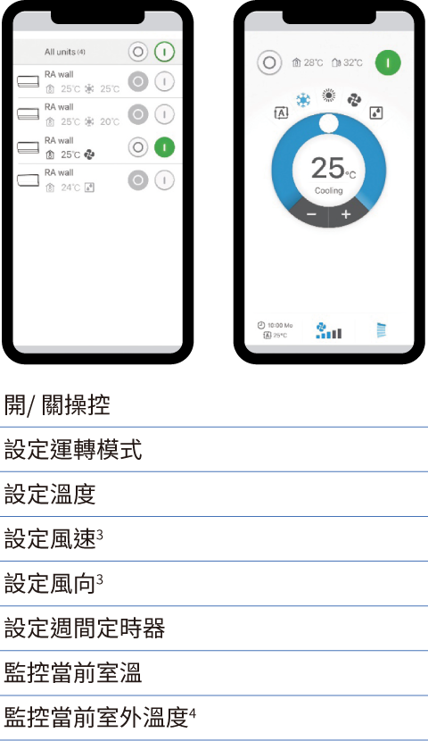 2. 行動手機適用的操作系統,請上大金官網http://www.daikinthai.com/dmobile/查詢。需要網路連線來使用此服務。標準的智慧型手機使用大金行動控制器APP應用程序來監視或控制空調時或許會有電信費用產生。