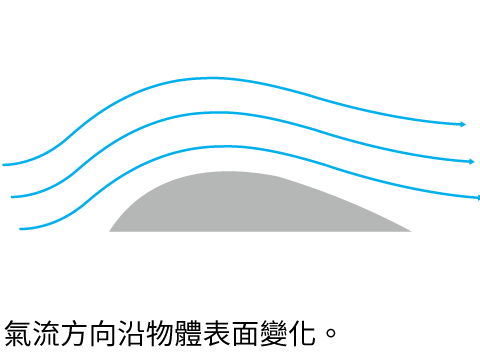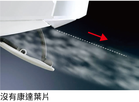 康達效應原理是讓氣流或水流被吸引到附近的表面。如果打 開水龍頭並握住湯匙,讓它輕輕接觸水,水流將會沿著湯匙 表面流動。 康達面板可產生類似效果。它的形狀 讓氣流沿著面板向上彎曲到天花板。 這樣一來,空氣就可以傳播多達10 公尺¹遠,散佈到整個房間,而產生 舒適的氣流。