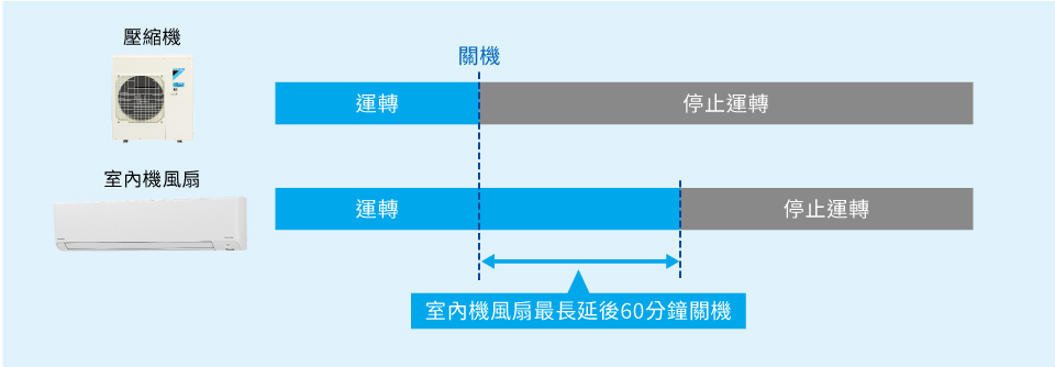 1. 當關機定時器停止冷房或除濕運轉時,此功能不會啟用。