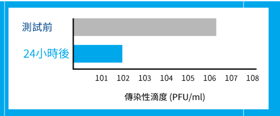 該濾網可將病毒感染力滴度降至小於 1/1,000。
