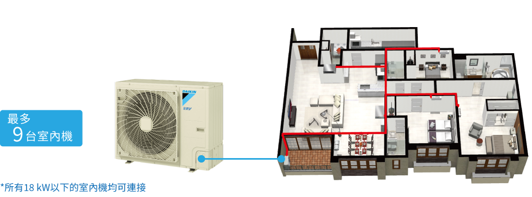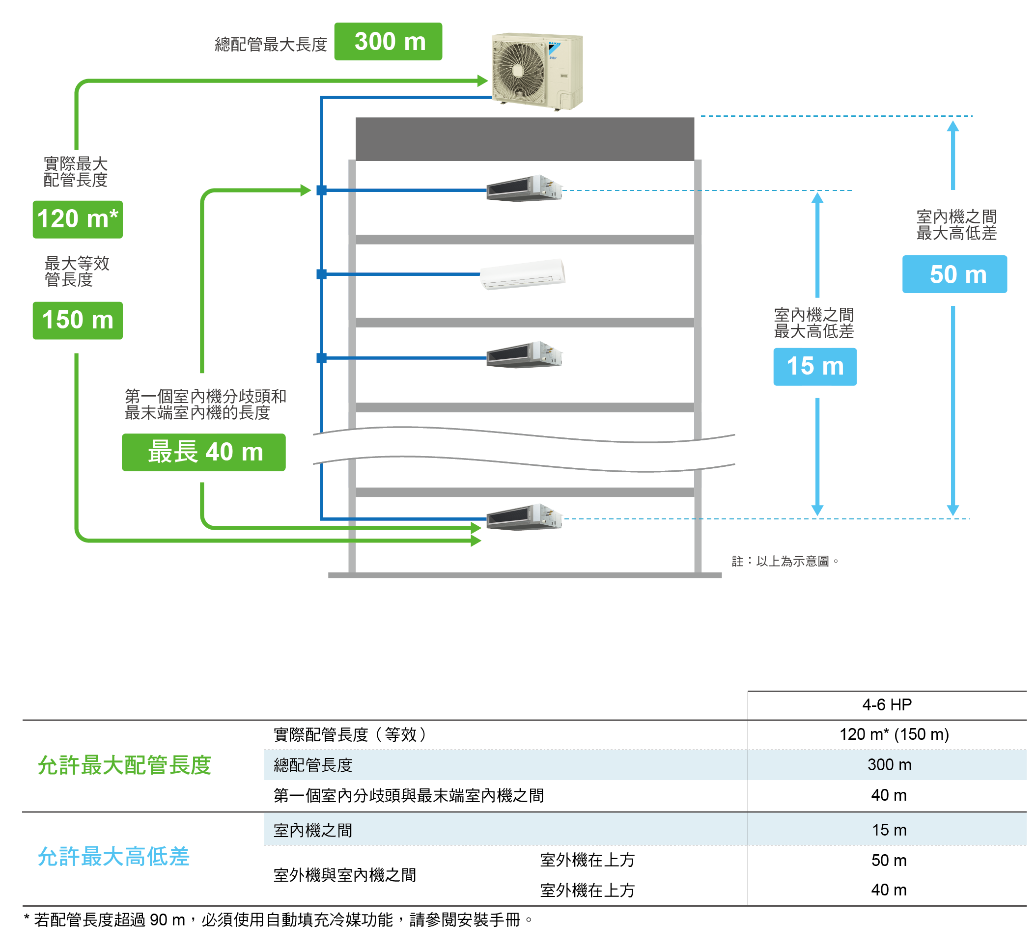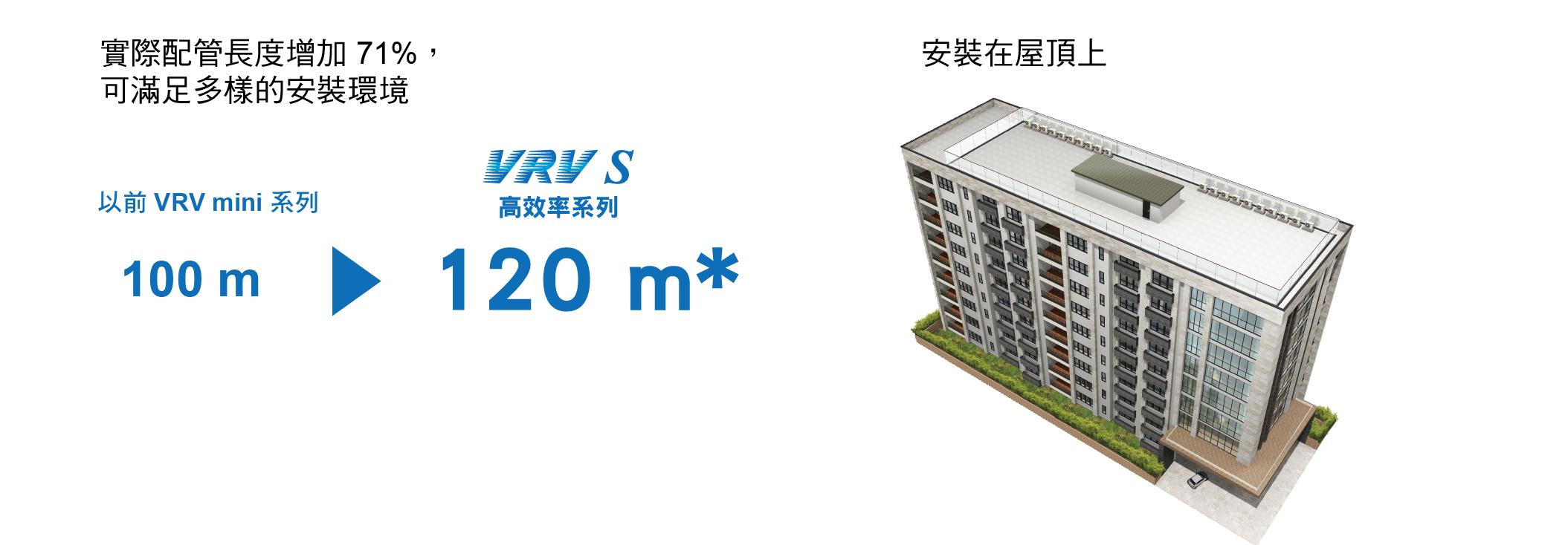 外機高度更低、冷媒配管更長,安裝設計更靈活,應用更廣泛。