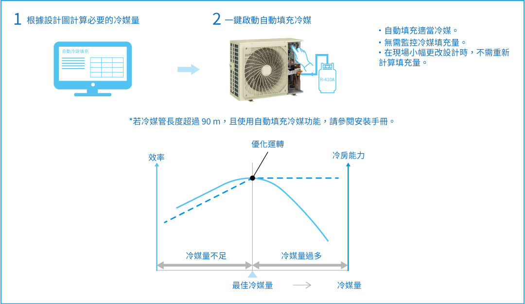 - 自動填充冷媒帶來更高品質和更簡便的安裝。