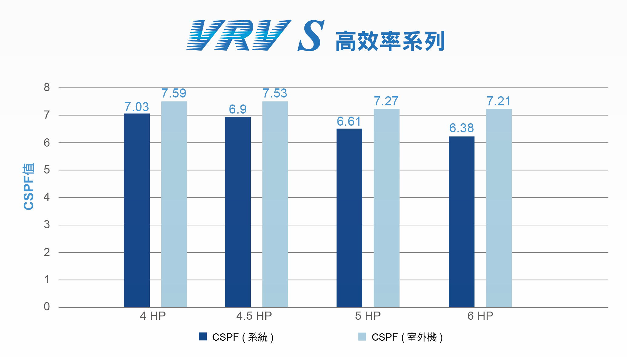 RSUYQ-A 設計符合 CSPF* 的 ISO 標準。不僅在低負載期間降低功耗,且在尖峰負載期間有更好的冷房能力。