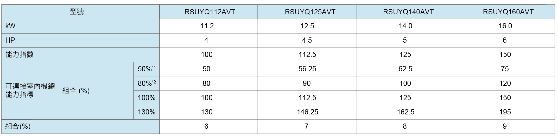 所有型號 (RSUYQ112-160AVT) 均符合1 級 CSPF 能源效率。