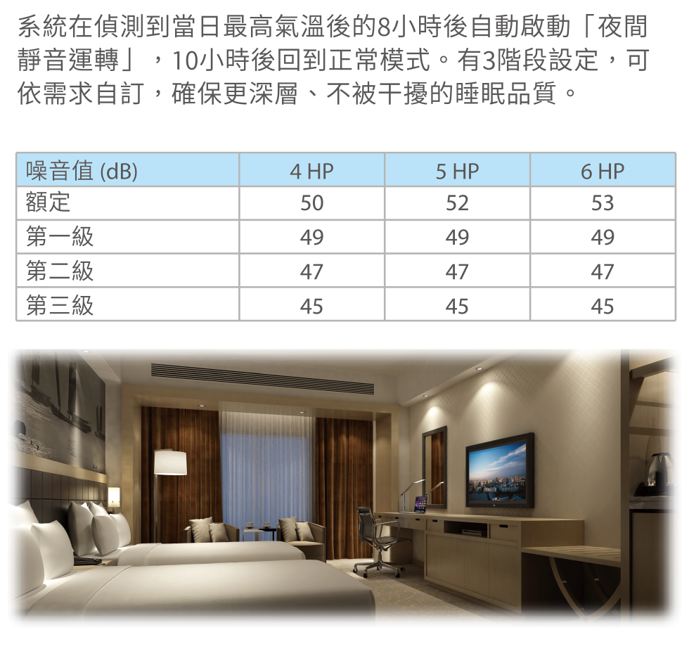 ·噪音值 : 無音室轉化聲值,距離機組前方1m處,高1.5m處測得。