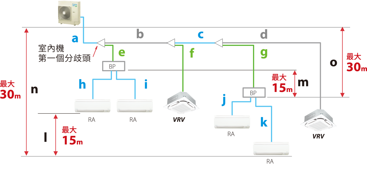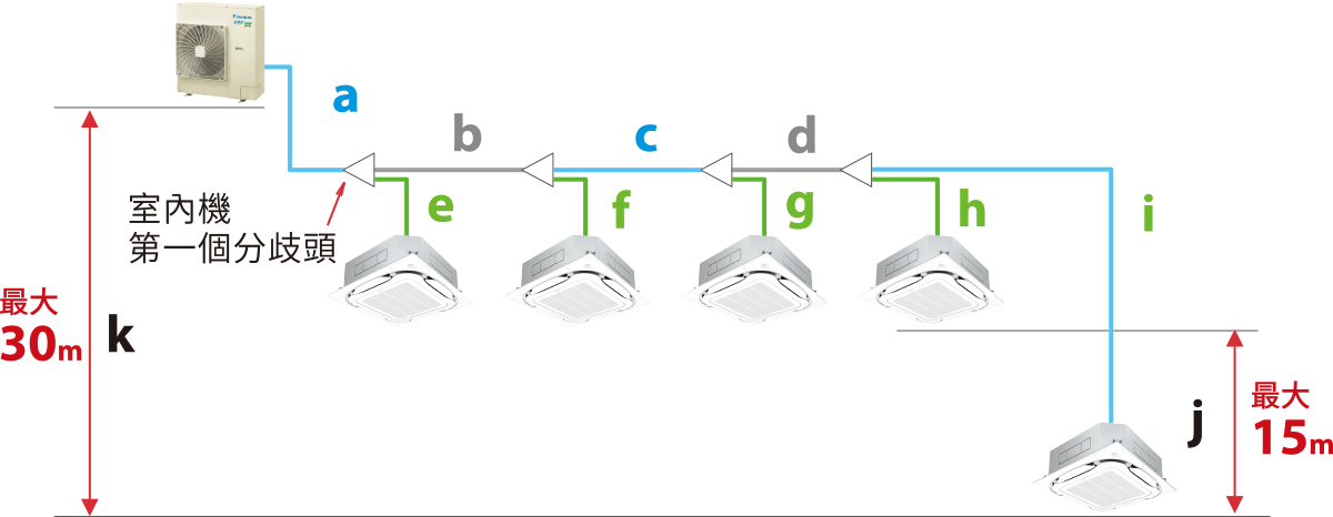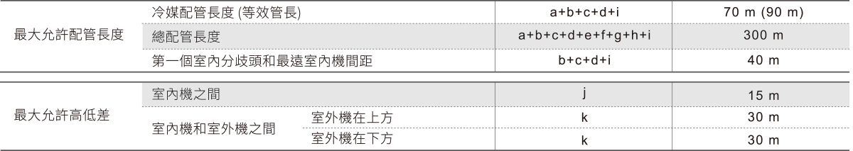 有關冷媒配管連接的詳細信息,請參閱工程數據手冊。