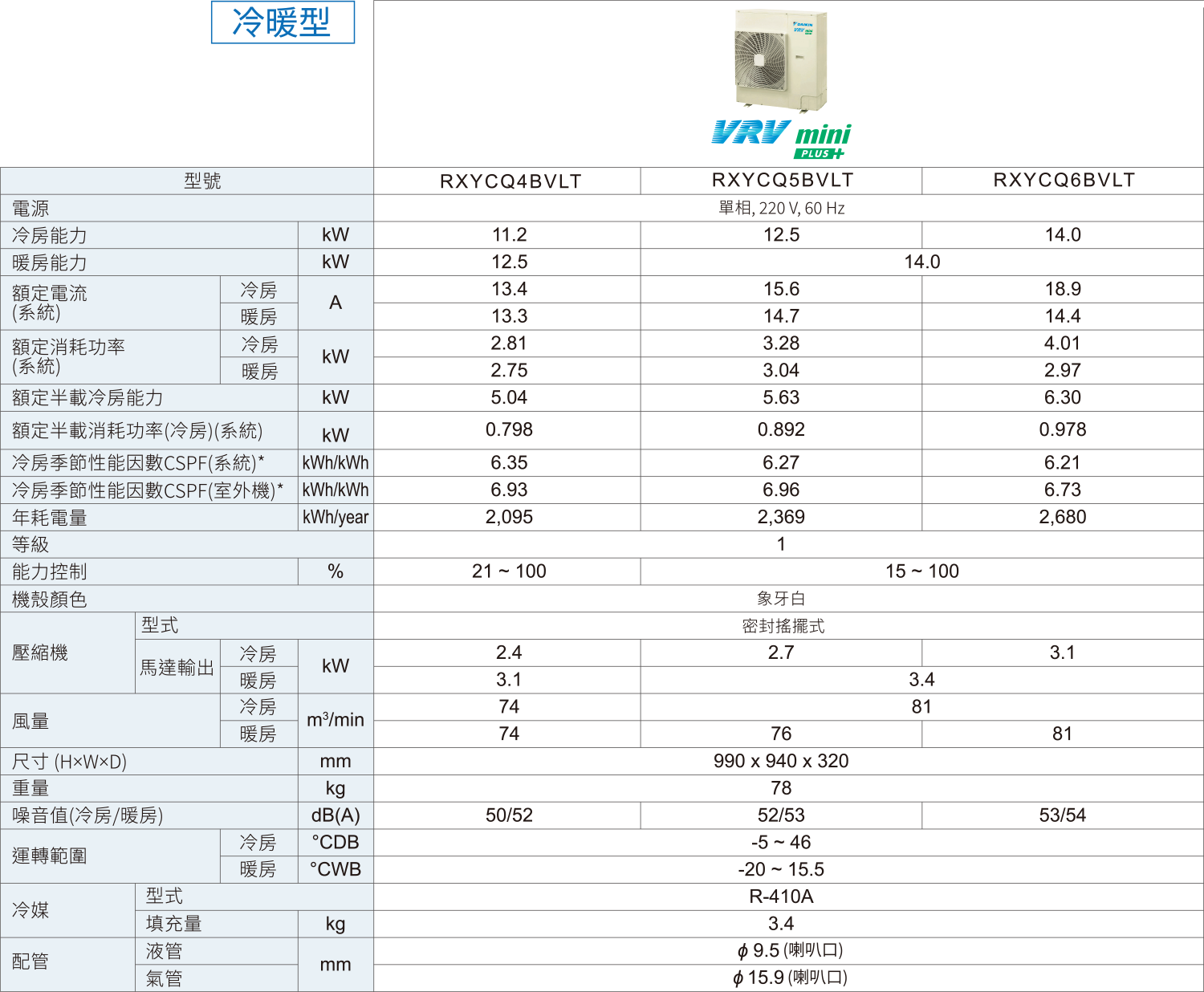 *暖房運轉條件 : 室內溫度 20℃DB 和室外溫度 7℃DB,6℃WB。