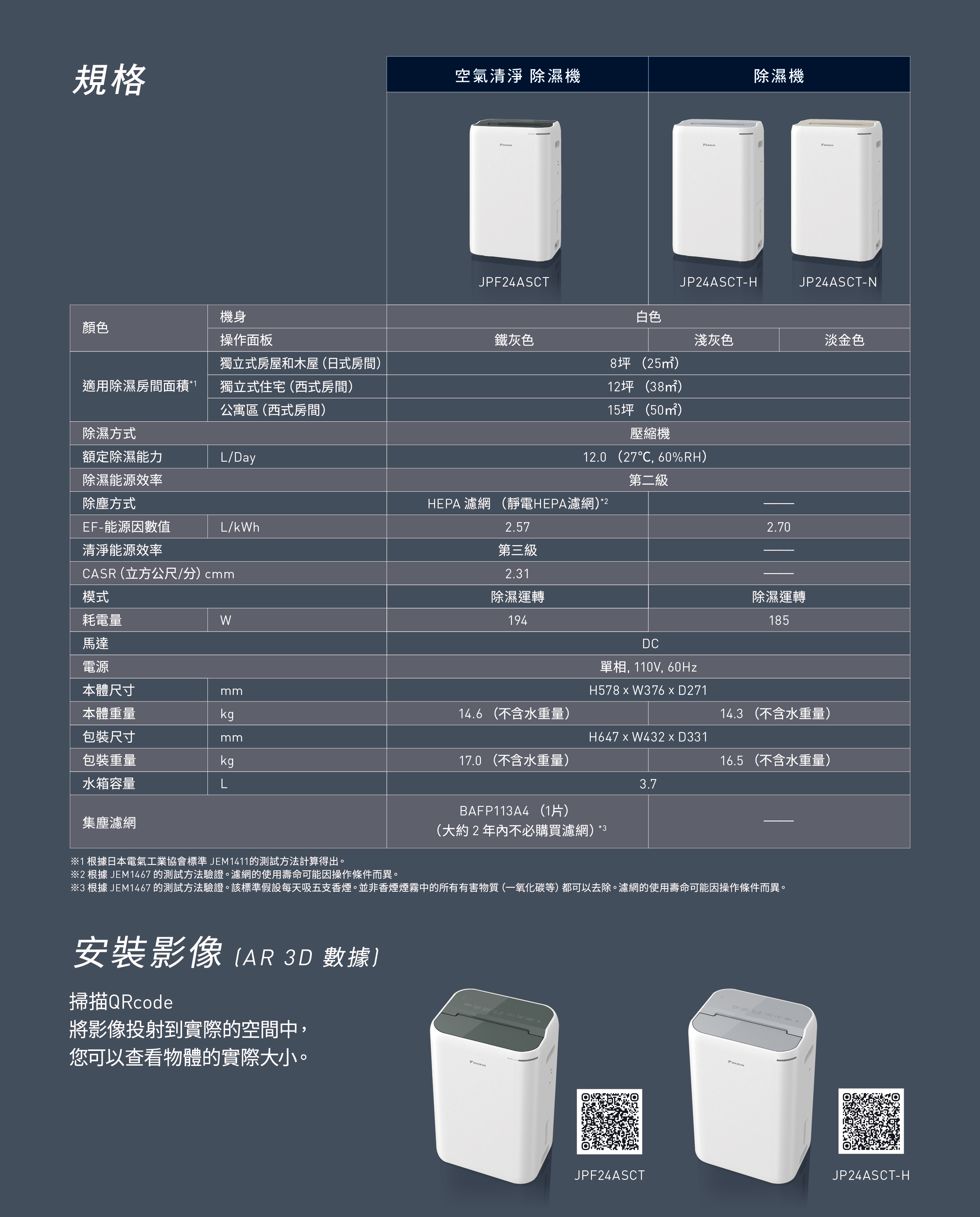 空氣清淨機/除濕機JPF24ASCT/JP24ASCT