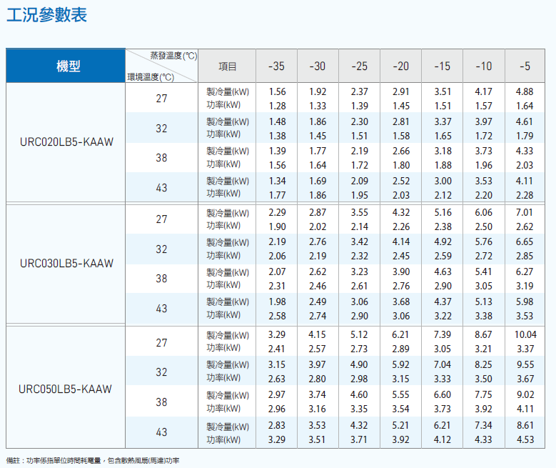 1. 最大製冷量和額定製冷參數在以下工況測得:蒸發溫度-23℃,環境溫度32℃,吸氣溫度5℃。