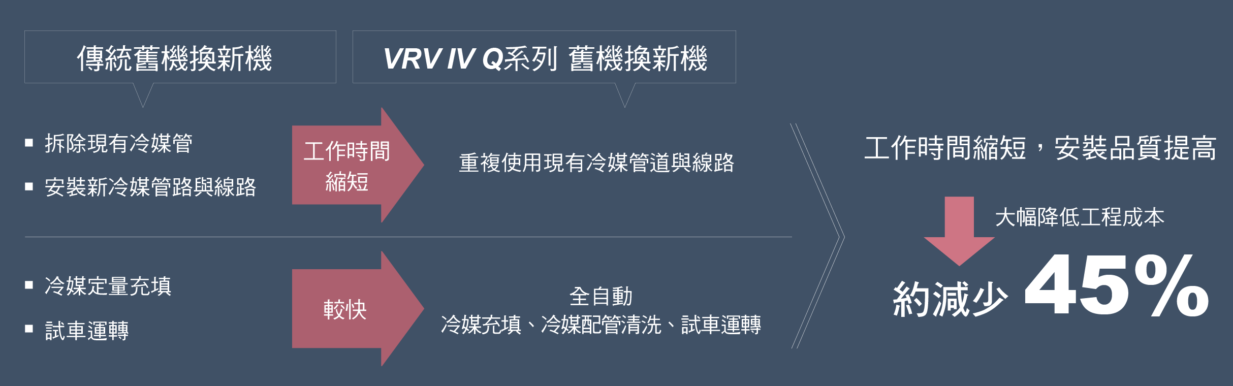1.免拆裝潢、2.沿用原室內機、3.沿用原管路