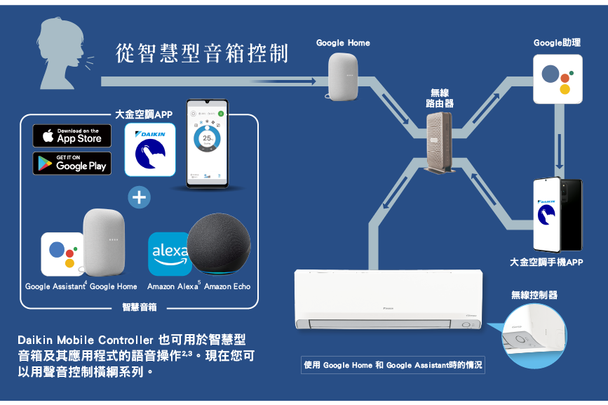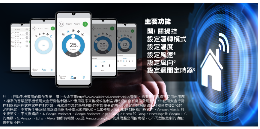 橫綱Y系列內建Wi-Fi無線網路接收器,橫綱Z機型則可選購無線控制器連接PCB。透過大金空調APP1(Daikin Mobile Controller)連接到系統後,您可以有效地將智慧型手機當作遙控器2。提供便利的方式來保持室內舒適性,並且可以節省能源。也讓您在外用手機遙控家裡空調,無需擔心是否忘記關閉空調的煩惱。