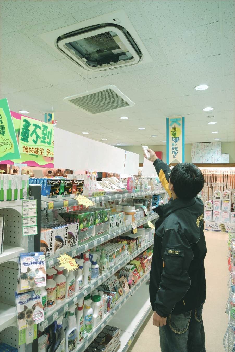 務,那邊是一般賣場可見的直立式箱型冷氣,整個賣場的溫度不均,