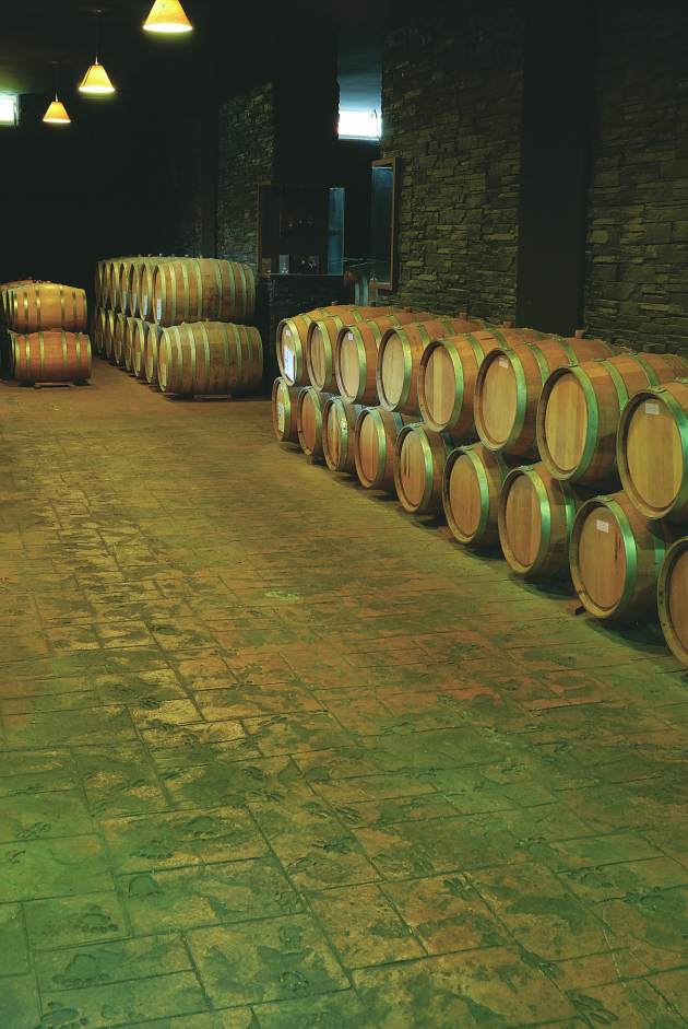 信義酒莊內的酒窖,地面上還印有山中常見的動物腳印,象徵原住民的文化特色。