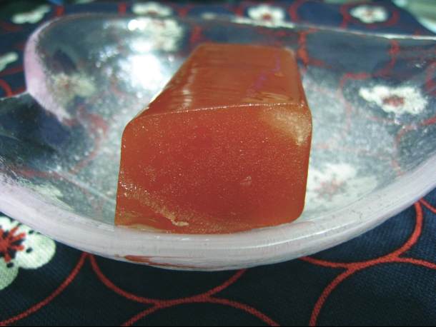 羊羹,原是添加有羊肉的羹湯,待放涼後,隨著肉類所