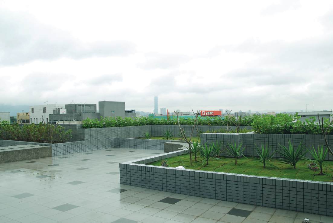 大樓頂樓一角可眺望台北
