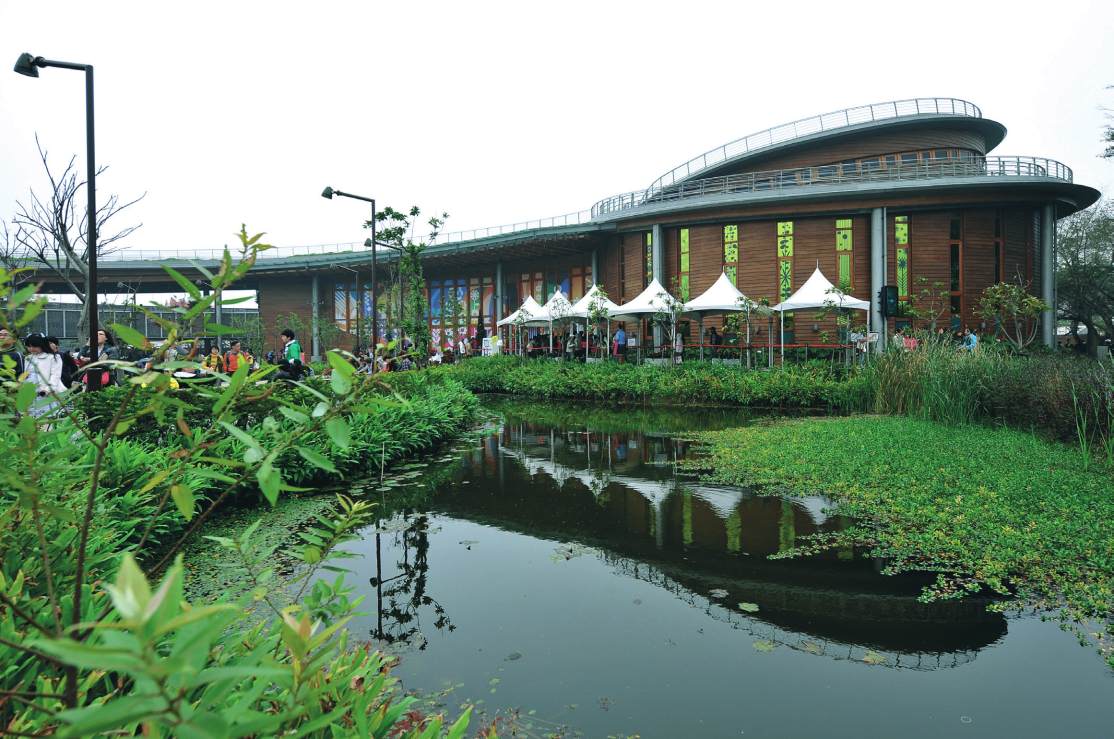 牆,外頭有個小小的生態池,具有創造生物棲地、淨
