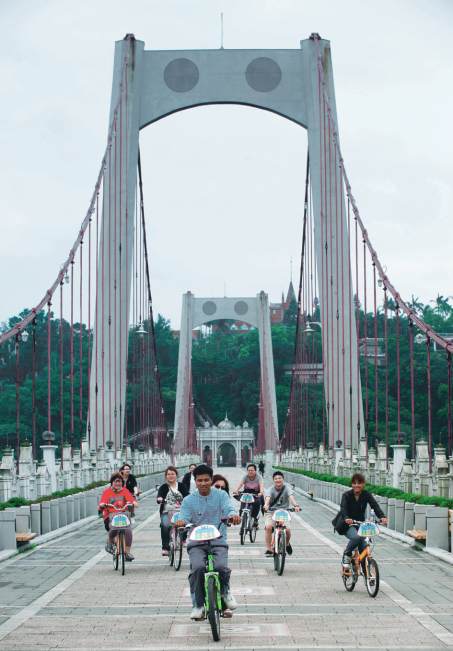 前僅供行人和腳踏車通行,漫步於白色的舊橋之上,令人