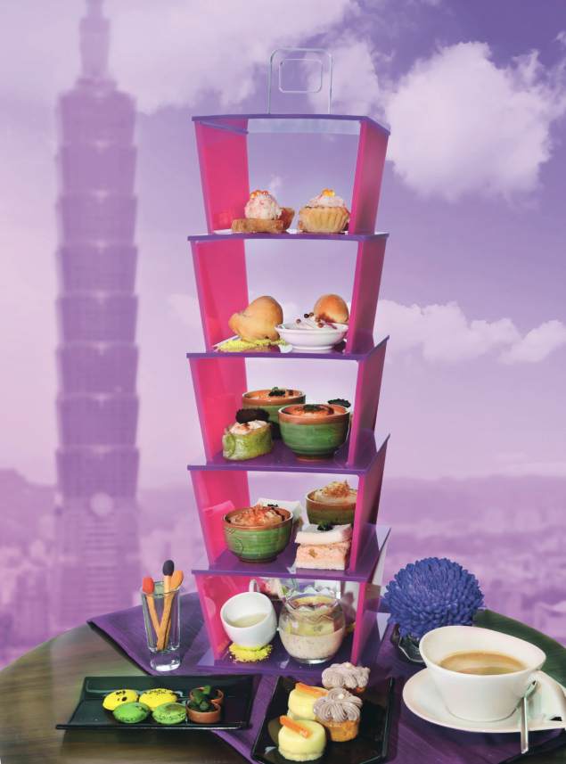 層紫色透明壓克力塔,上桌氣勢十足。主廚