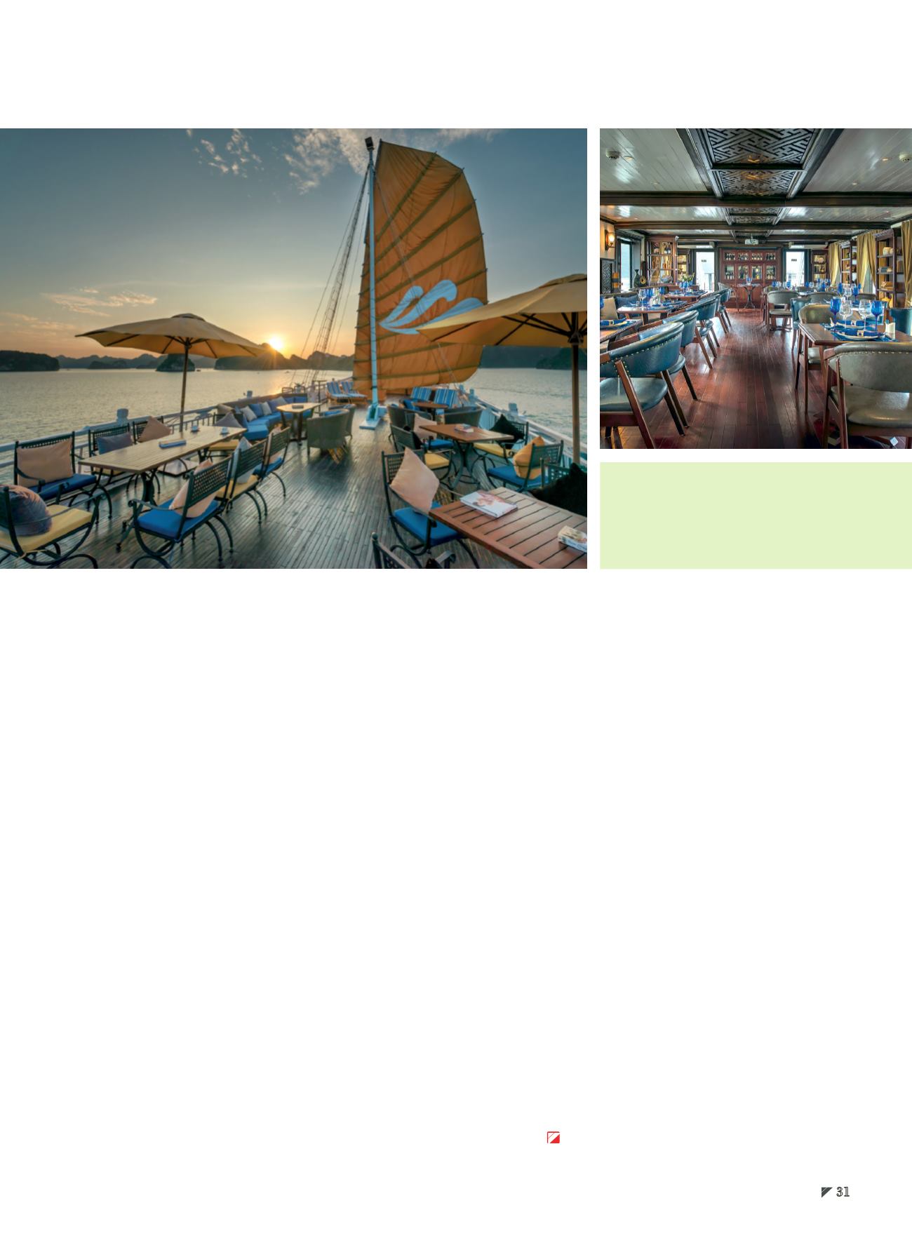 南與當地海鮮料理。另外,在頂層甲板上則有個酒吧,